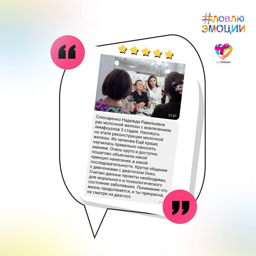 «Мы очень благодарны всем партнёрам за возможность устроить настоящий праздник красоты для девушек с онкологией. Но самое главное — это глаза участниц, светящиеся счастьем от полученных эмоций во время челленджа “Ещё краше”. Девушки особенно радовались тому, что научились самостоятельно наносить макияж во время мастер-класса».